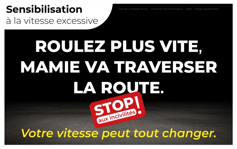 La Ville de Lamballe-Armor lance une campagne de sensibilisation contre la vitesse excessive au volant à l'attention de tous les conducteurs de véhicules motorisés. La campagne adopte un ton choc, percutant et décalé dans le but de tous nos interpeller et de nous faire réfléchir à notre comportement au volant.